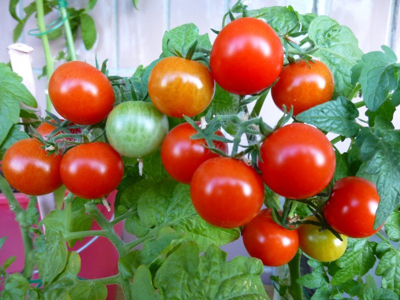 - Balkonwonder. De hoogte van een volwassen struik is niet groter dan 60 cm; vruchten worden snel gevormd: 90 dagen na het planten van de zaden. De smaak van tomaten is zoet, de massa van één tomaat is niet groter dan 60 g. De opbrengst is 2 kg fruit uit een struik;