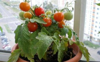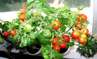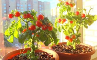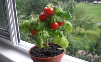 Koop speciale variëteiten voor thuis groeiende tomaten. Struiken worden compact. ze nemen niet veel ruimte in beslag in uw appartement en het zal erg handig zijn om voor ze te zorgen. Voor de teelt van tomaten op een vensterbank in de winter zijn de beste kwaliteiten: