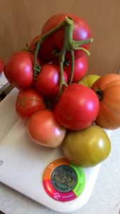 Tomatengewicht valt niet onder 380 g, maar 450 is ook de norm. Tegelijkertijd kan het gewas worden geoogst tot 15 kg per vierkante meter, wat veel is voor laagblijvende tomaten.