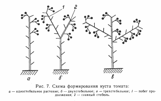 - "Budenovka" vorm, waardoor een of twee stengels achterblijven. Alle stiefkinderen moeten permanent worden verwijderd. Aan de stengel is niet veel uitgerekt, het is van bovenaf geknepen.