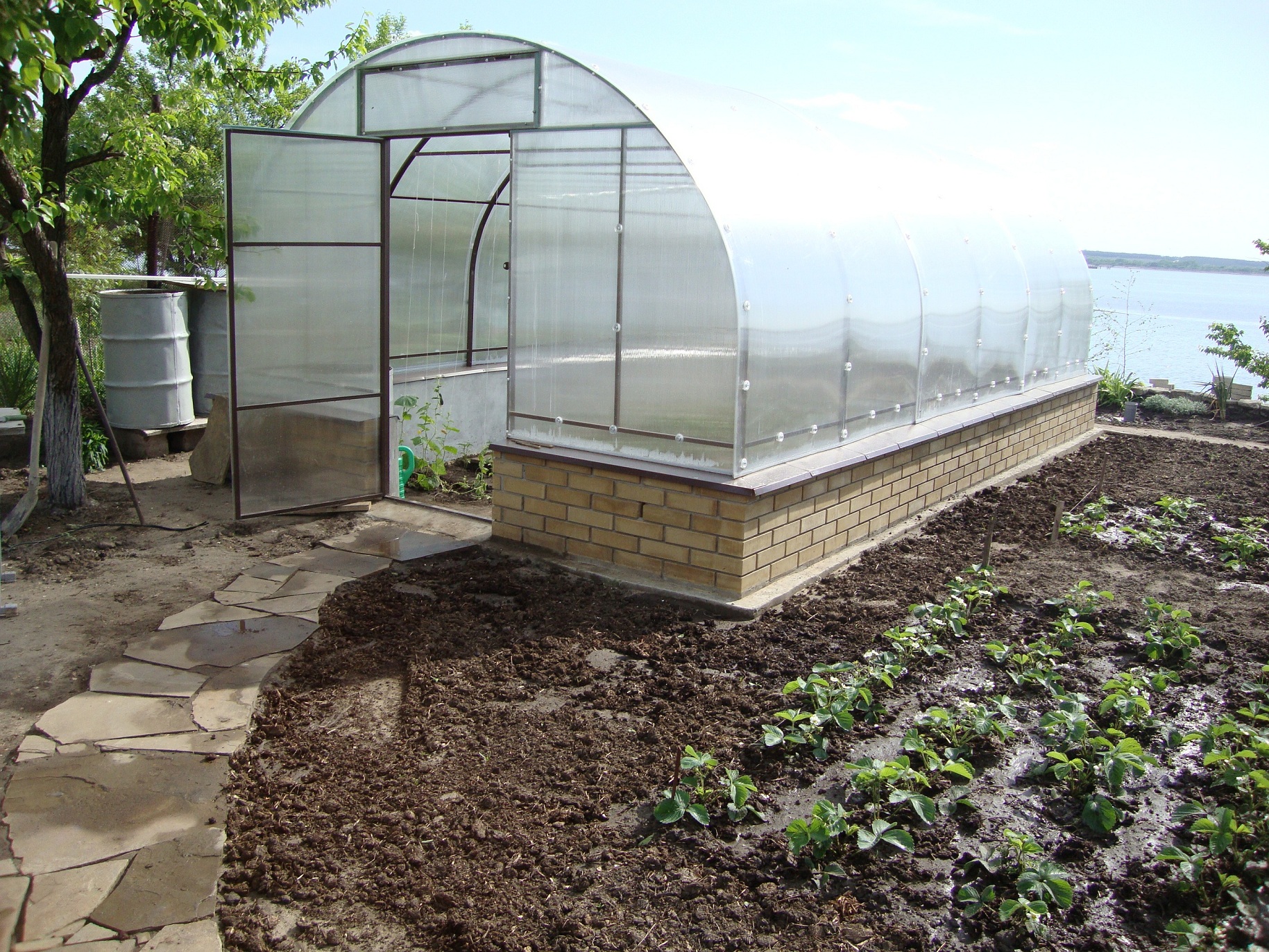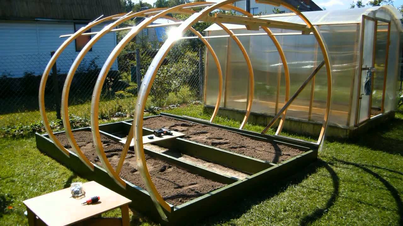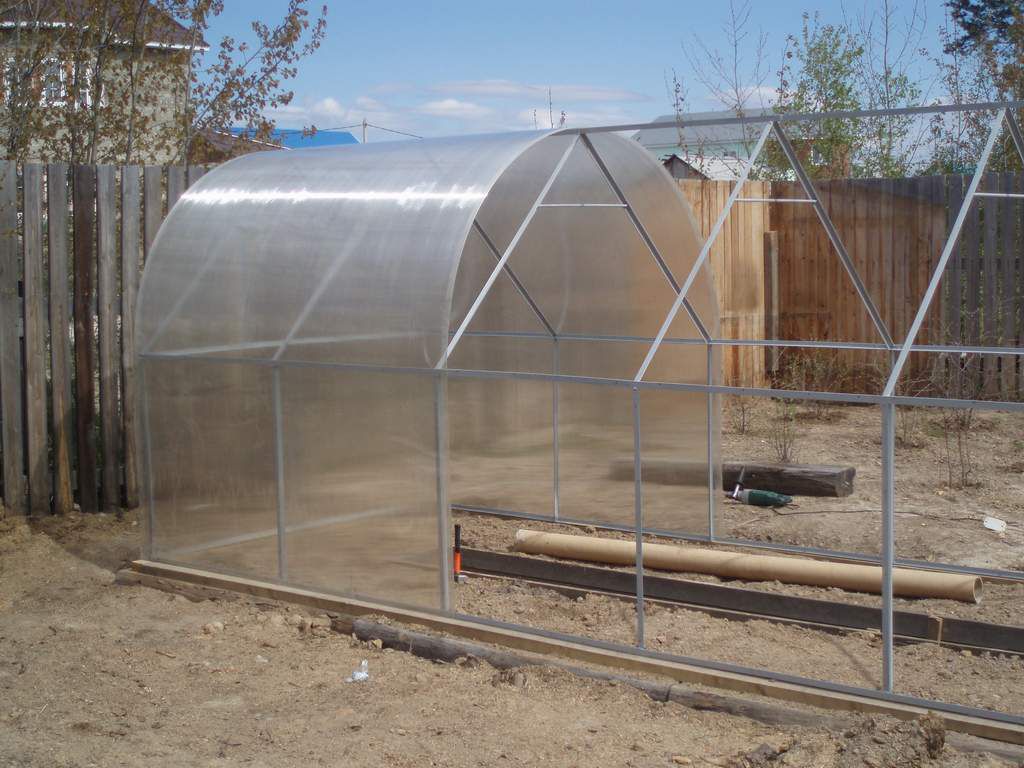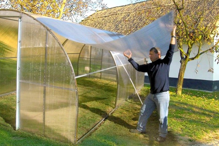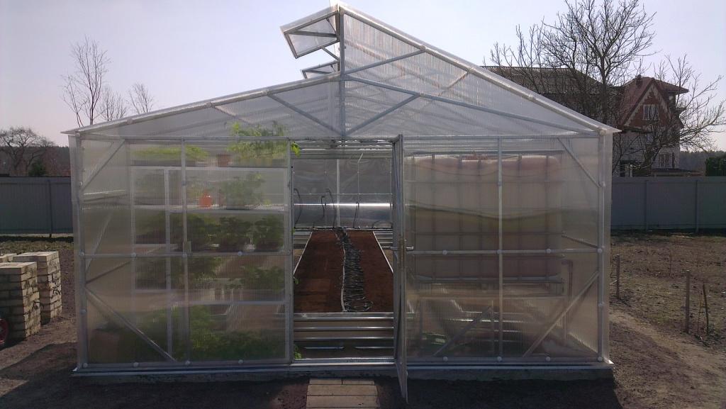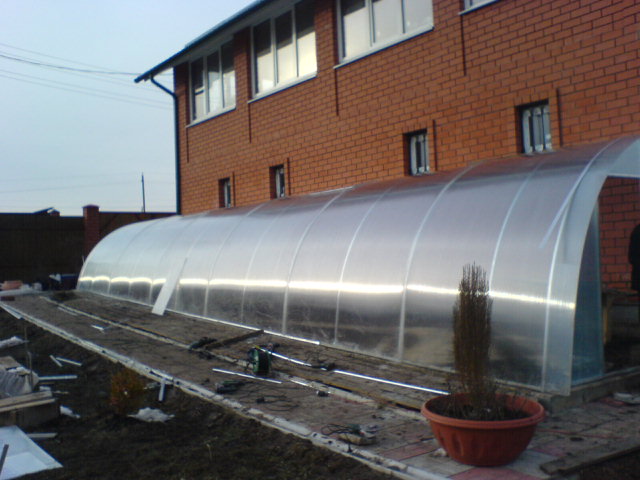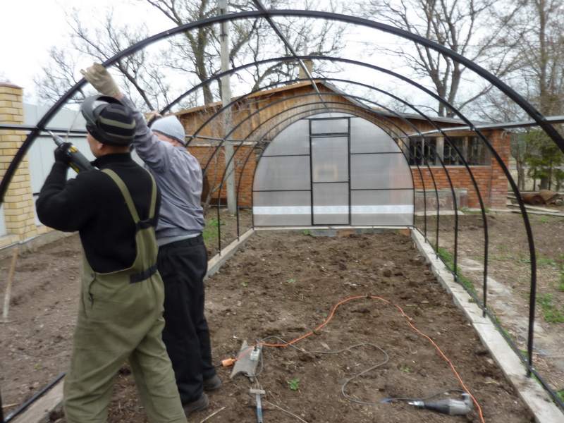 Werk moet worden uitgevoerd op een droge dag nadat de sneeuw is gesmolten. Al in april-mei kunt u zaailingen planten in een betrouwbare moderne kas, die u ten minste 15 jaar zal dienen.