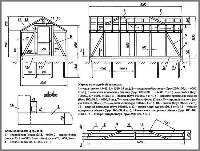 Voor zelfbouw heeft u polycarbonaat nodig in de hoeveelheid die nodig is om het frame te naaien. Voor het monteren van de kern is het noodzakelijk om een buisprofiel of een houten blok te maken. Metalen buisprofiel moet een doorsnede hebben van minimaal 20 x 20 mm. Bars moeten worden gekocht met een afmeting van minimaal 30 x 30 mm. Bereid ook bevestigingsmiddelen voor.