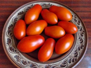 En hier blijkt het absurd te zijn - zelfs aan het begin van het artikel hebben we het over hoe het verstandig is met de foto's op de verpakkingen dat het ras eigenlijk is afgerond in plaats van pruimvormig - en daar voegen ze foto's in met tomaten in het algemeen in verschillende pruimvormige vormen. Grappig.