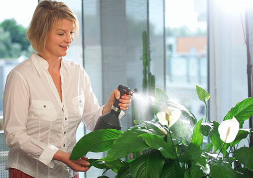 De bladeren van de plant worden systematisch afgeveegd met een vochtige spons, die het vocht verhoogt en de ademhaling van de bloem vergemakkelijkt.